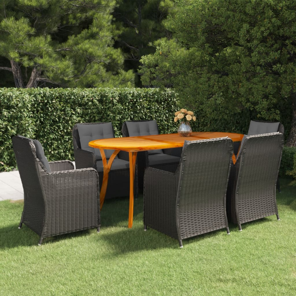 - vidaXL 7 Piece Patio Dining Set Black - Sturdy Acacia Wood Table and Weather-Resistant PE Rattan Chairs