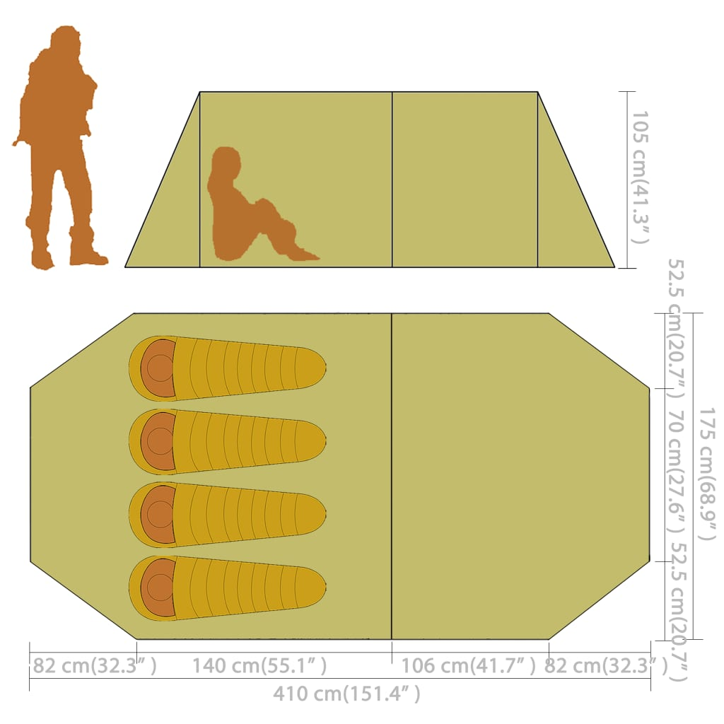 vidaXL Camping Tent 4 Persons Navy Blue/Yellow - Spacious, Easy to Set Up Tent