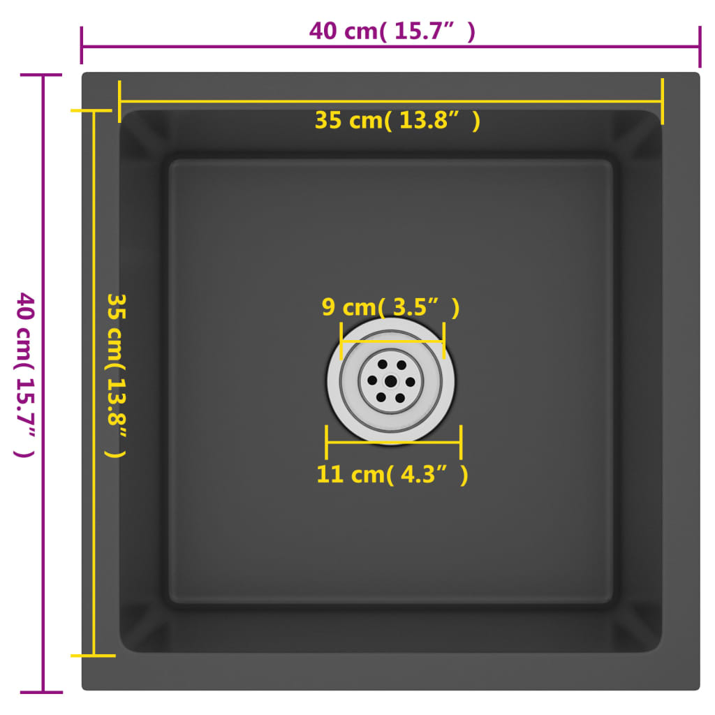 vidaXL Handmade Kitchen Sink Black Stainless Steel - Contemporary Design