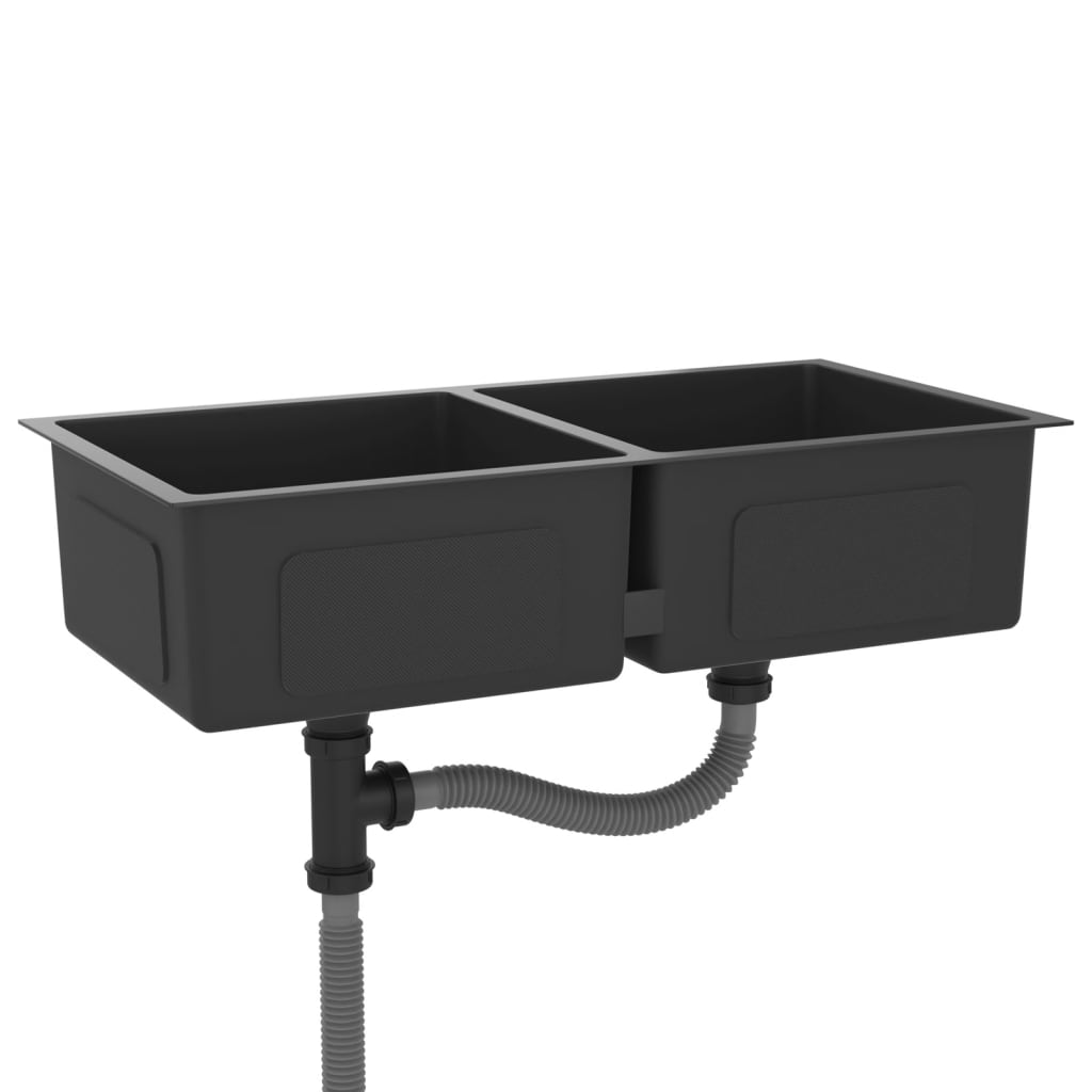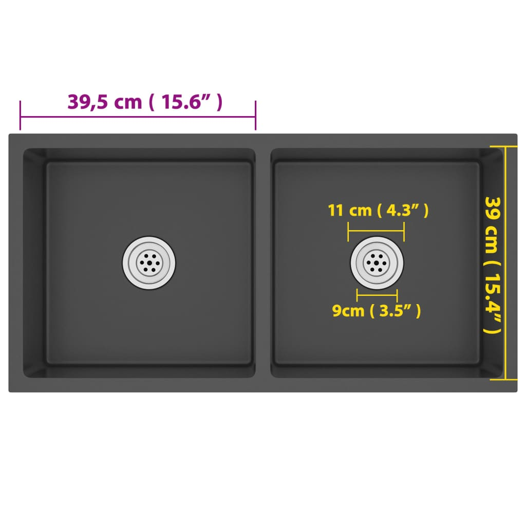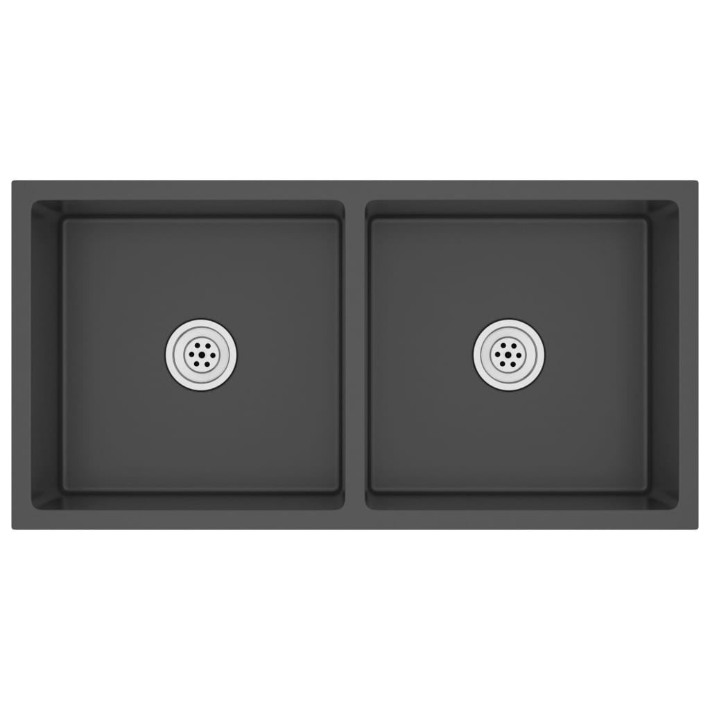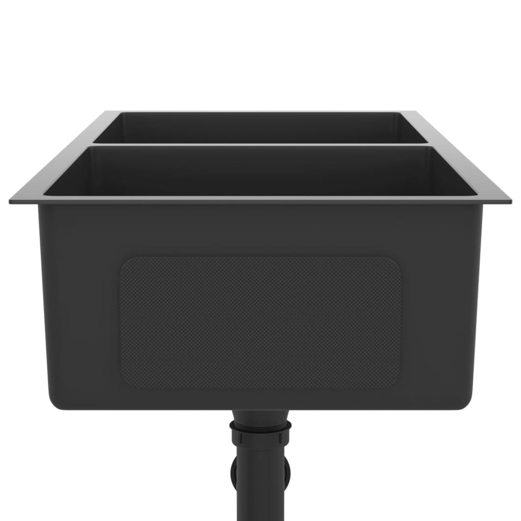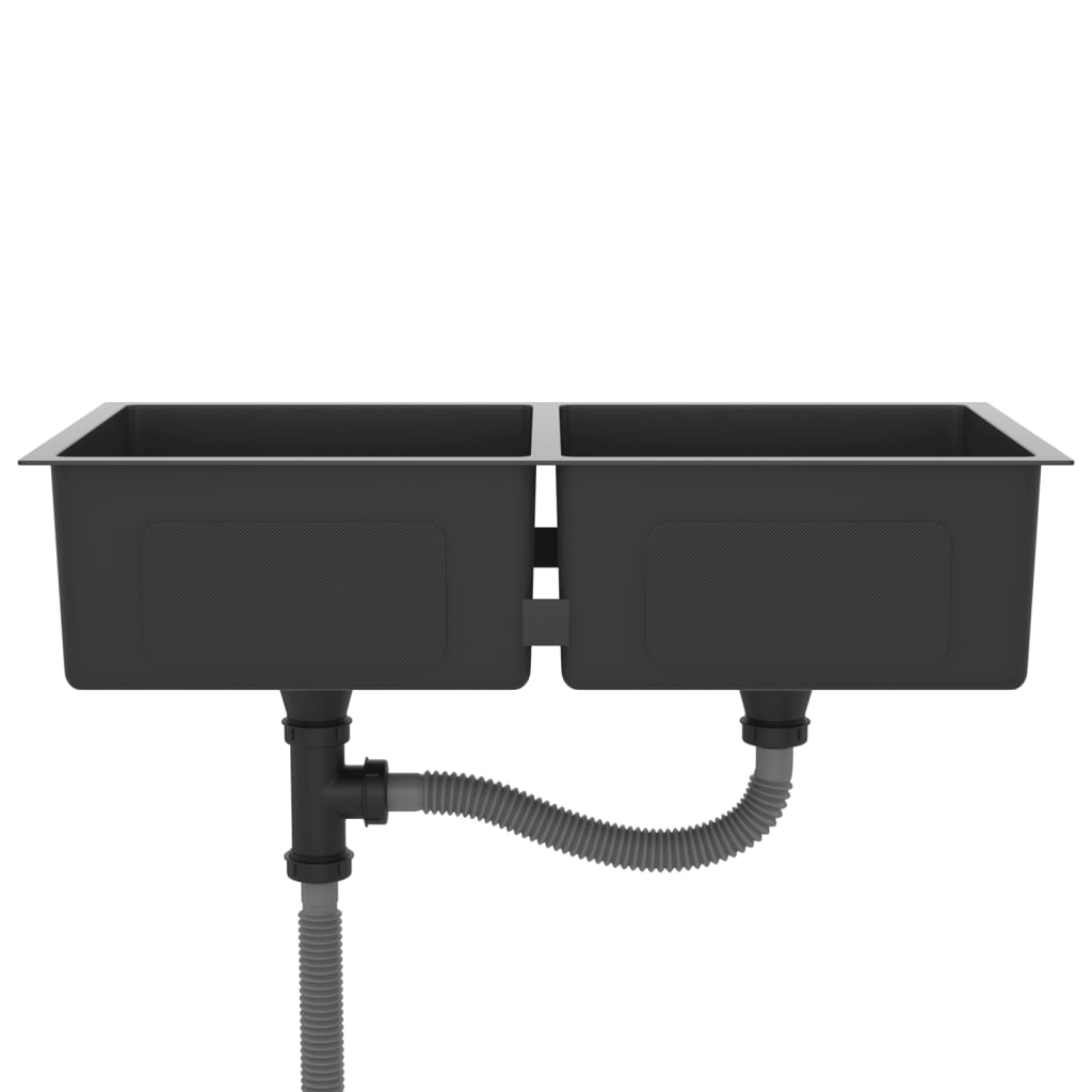 Enhance the style and functionality of your kitchen with the vidaXL Handmade Kitchen Sink Black Stainless Steel. This sink offers clean contemporary designs and features two bowls with a silky smooth satin finish, adding a touch of class and sophistication to any kitchen decor.