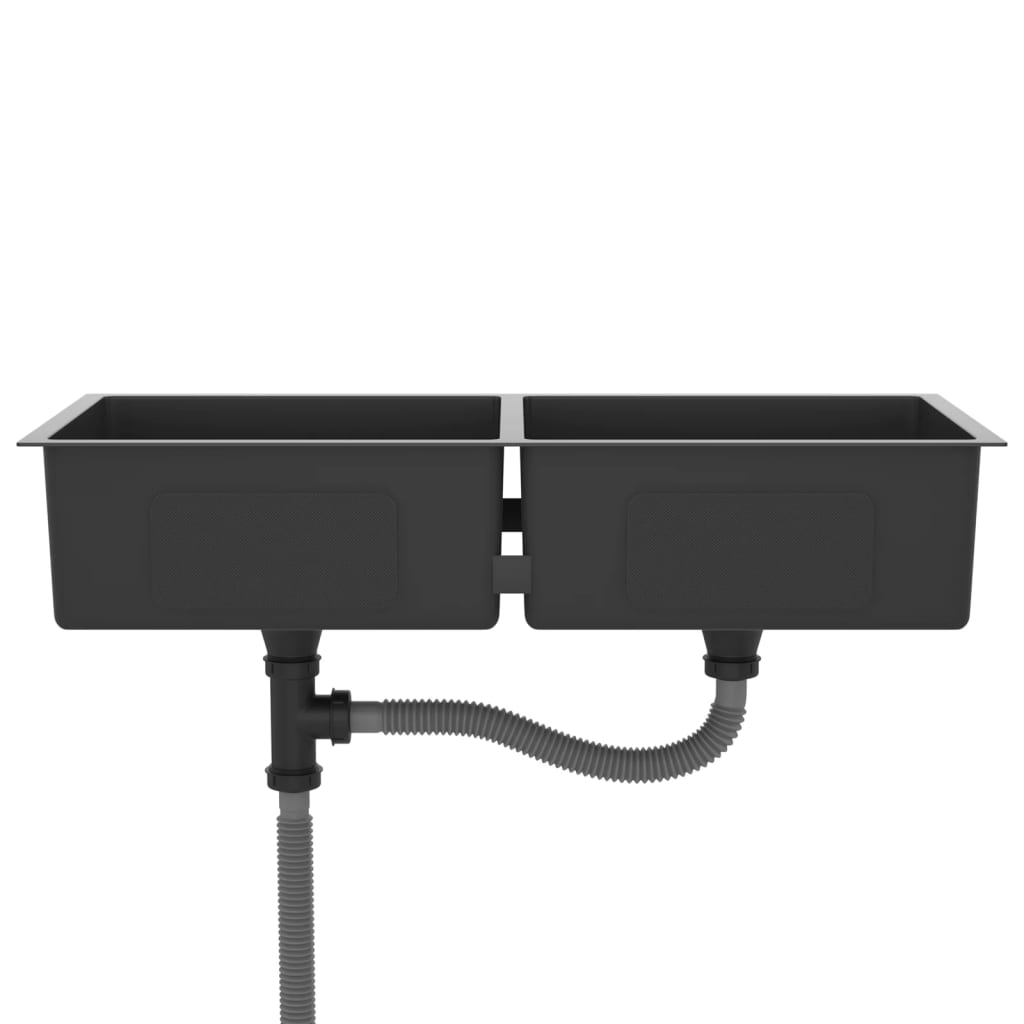 - vidaXL Handmade Kitchen Sink Black Stainless Steel