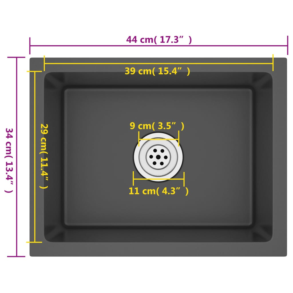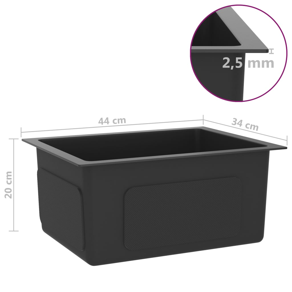 vidaXL Handmade Kitchen Sink Black Stainless Steel - Contemporary Design