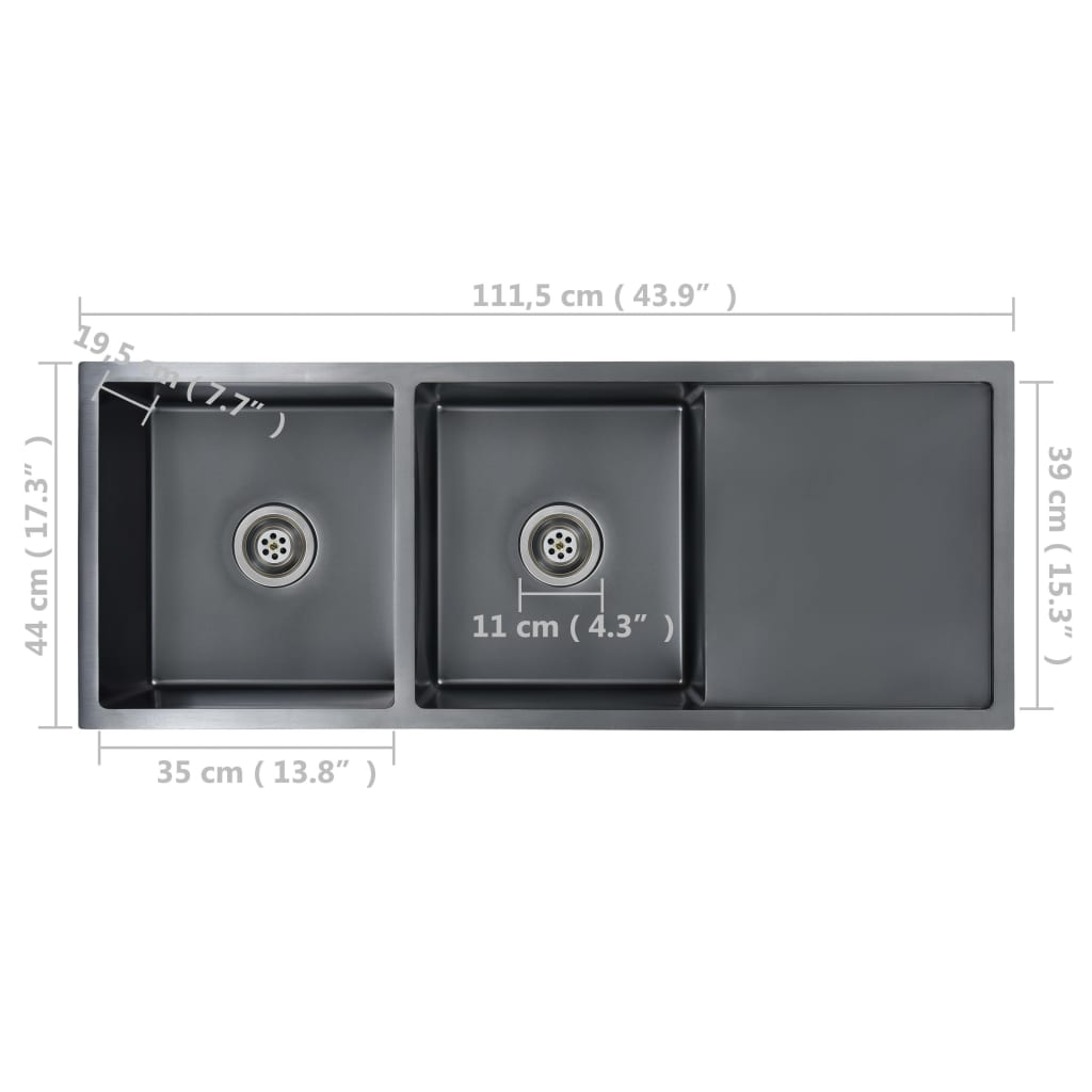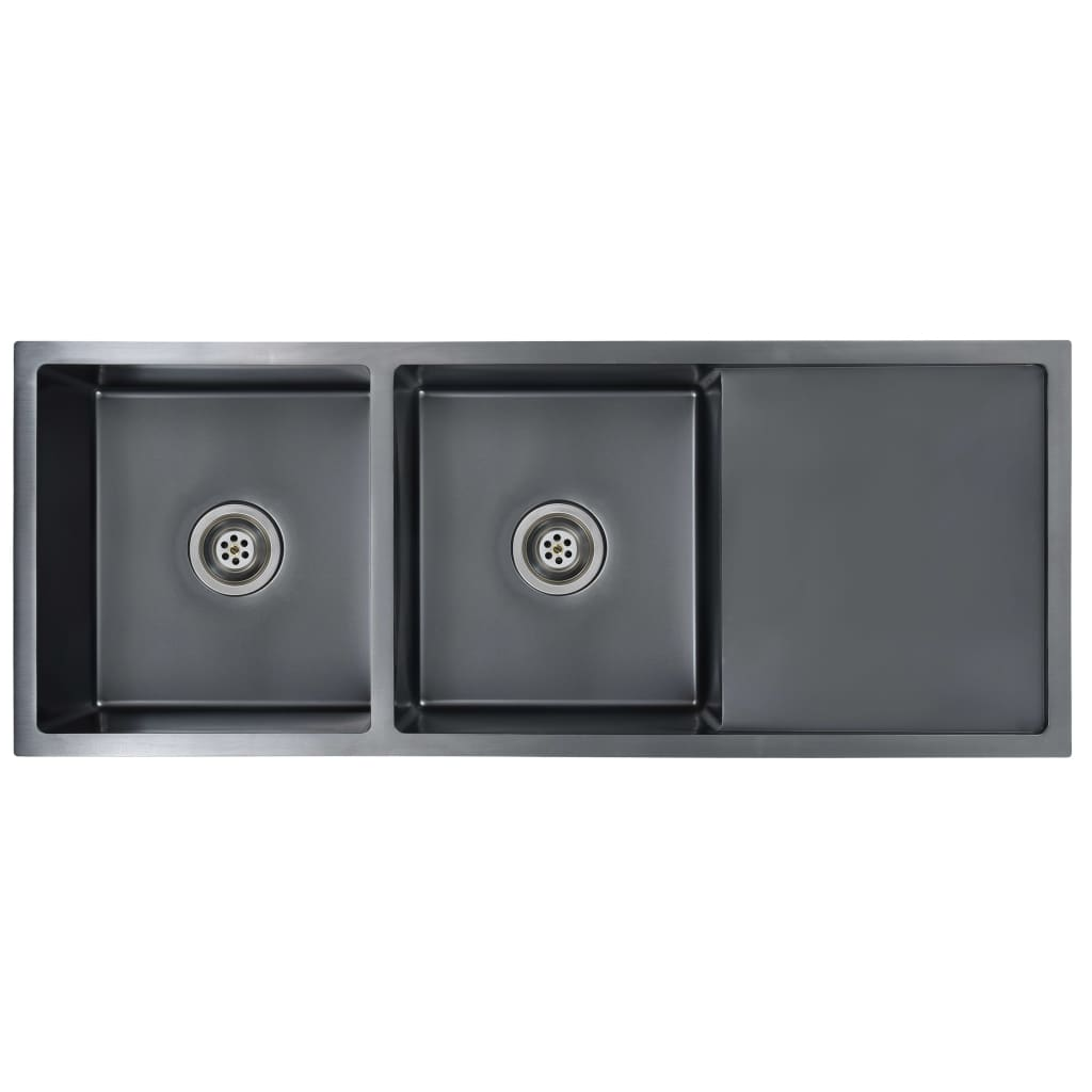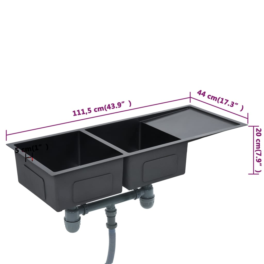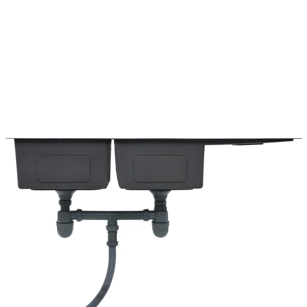 vidaXL Handmade Kitchen Sink Black Stainless Steel - Contemporary Design, Double Basin, Sound-Proofing, Easy to Assemble