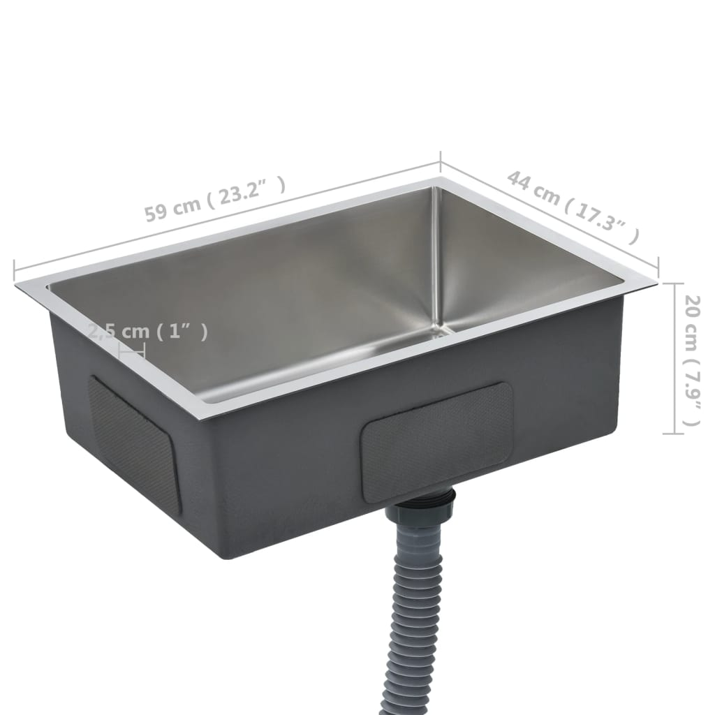 vidaXL Handmade Kitchen Sink Stainless Steel - High-Grade, Soundproof, Easy to Assemble