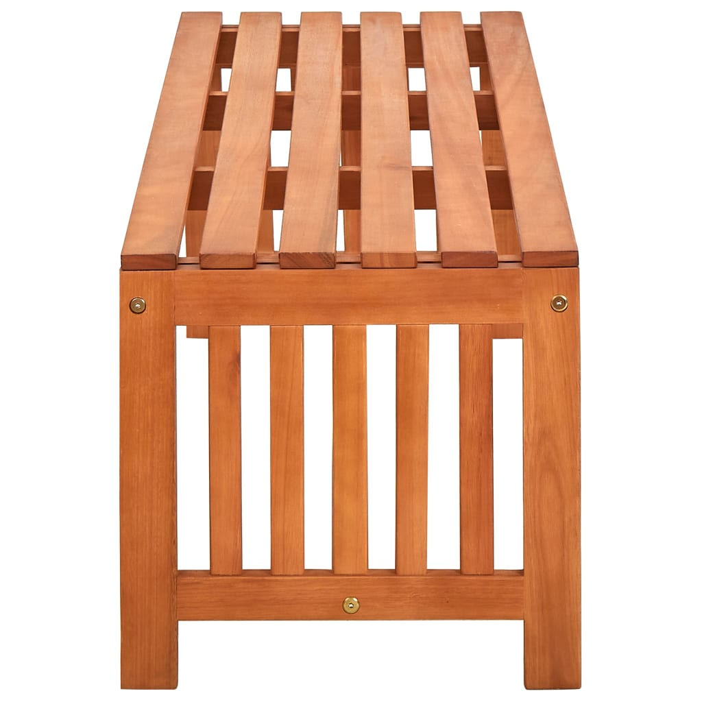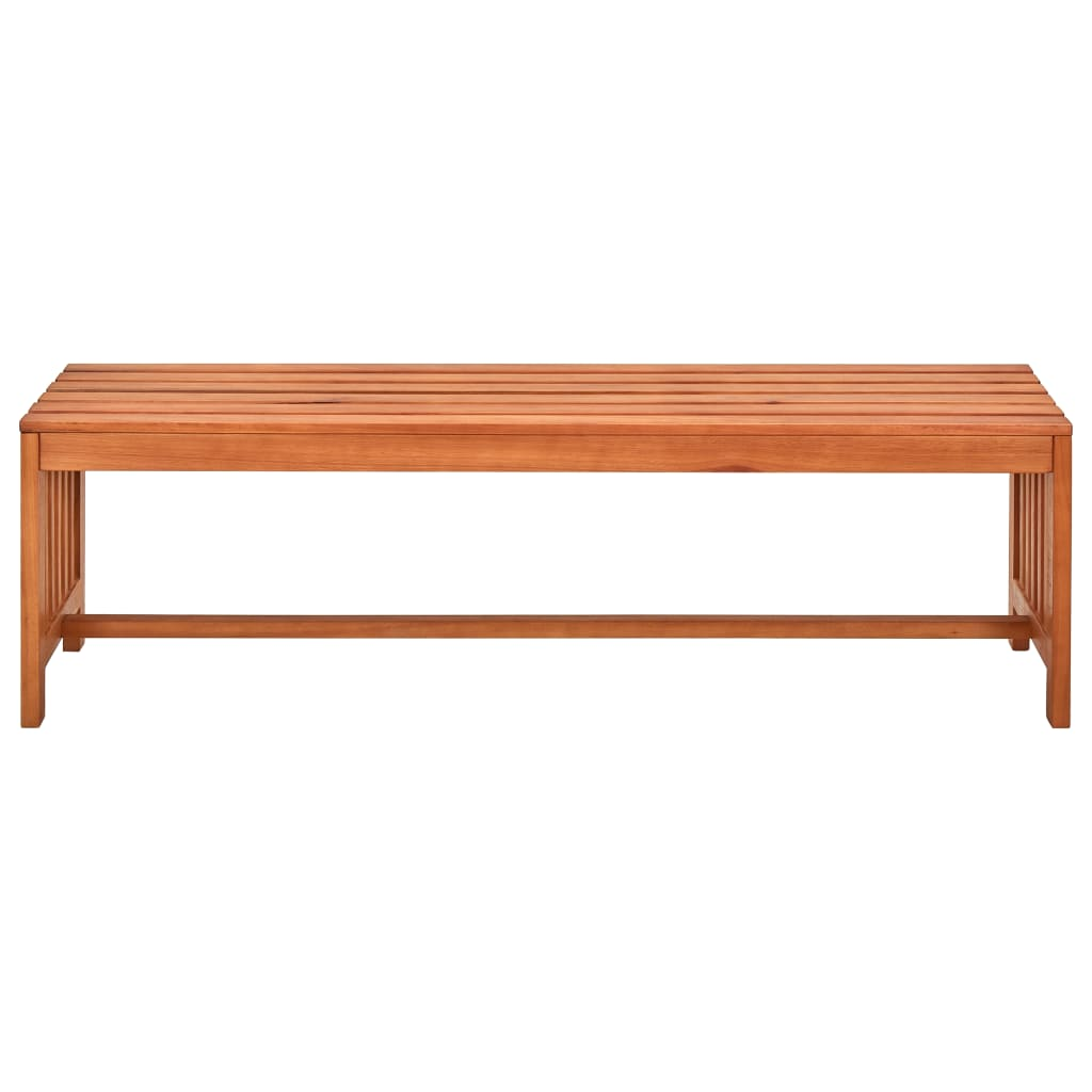 Made of solid eucalyptus wood, this patio bench is built to withstand the elements. The weather-resistant and durable construction ensures years of use and enjoyment. The oil-finished surface not only adds an attractive touch but also makes it easy to clean with a damp cloth.