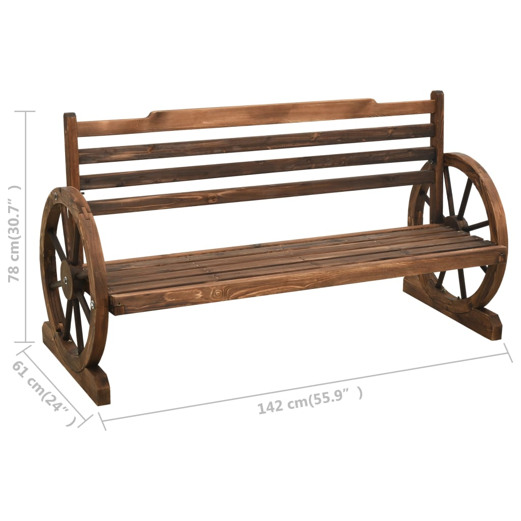 Enhance your garden or patio space with the vidaXL Patio Bench 55.9" Solid Wood Fir. Crafted with solid firwood, this sturdy and stable bench is perfect for relaxing and unwinding in the outdoors. Its unique wagon wheel design on the armrests adds a touch of charm, making it a captivating conversation piece among your guests. Experience optimal seating comfort with the ergonomically-designed shape of this garden bench.