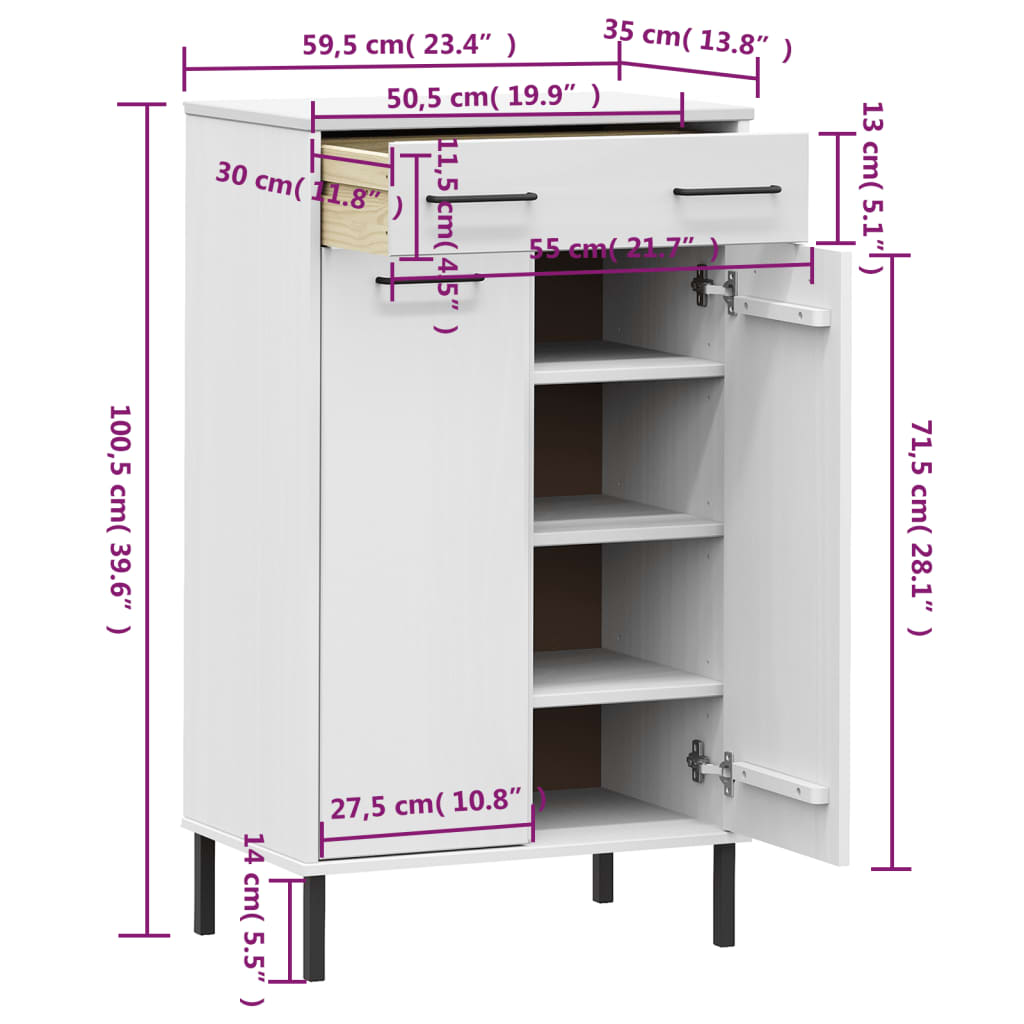 vidaXL Shoe Rack with Metal Legs White Solid Wood Pine OSLO
