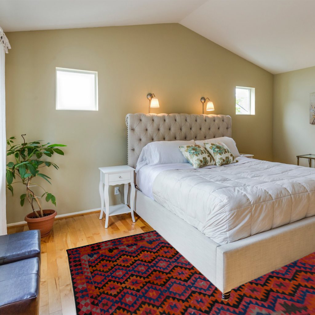 Introducing the Vintage Handmade Sanguine Brown Rug, a perfect blend of artistry and craftsmanship. This exquisite rug features a unique geometric pattern that adds a touch of modernity to any space. Made from 100% genuine wool, this rug is not only visually appealing but also durable and long-lasting.