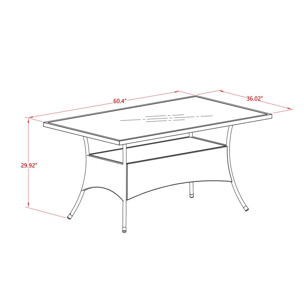 - Table dimensions: Length 60.04, Width 36.02, Height 29.92